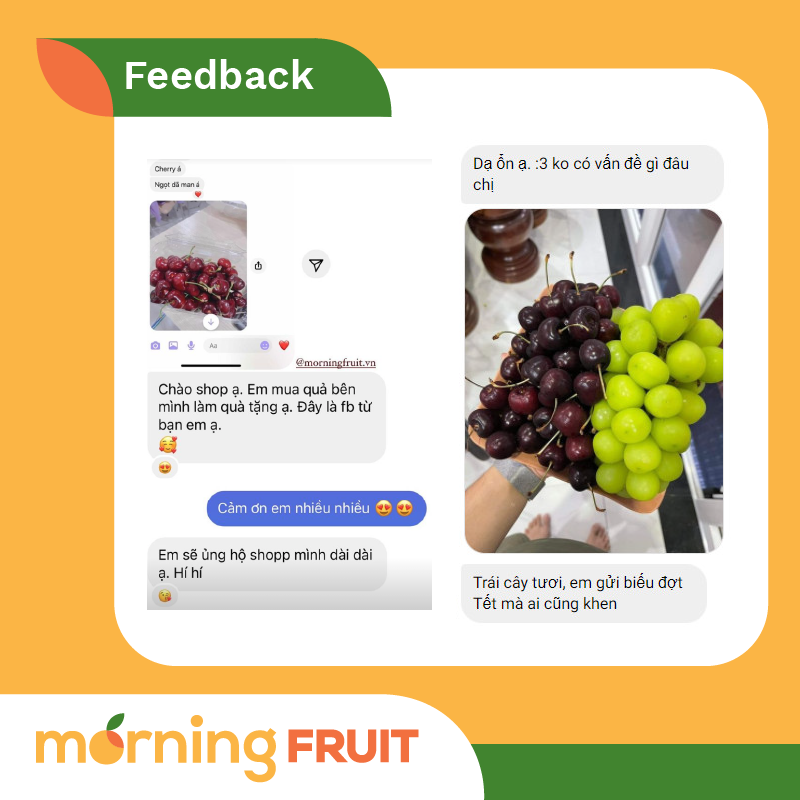 - Đa dạng trái cây nhập khẩu: Morning Fruit là thương hiệu trái cây chất lượng cao, đa dạng các loại quả đặc sản, có giỏ trái cây làm quà tặng. Mẫu mã đẹp, hương vị thơm ngon, đáp ứng cả những khách hàng khắt khe nhất.