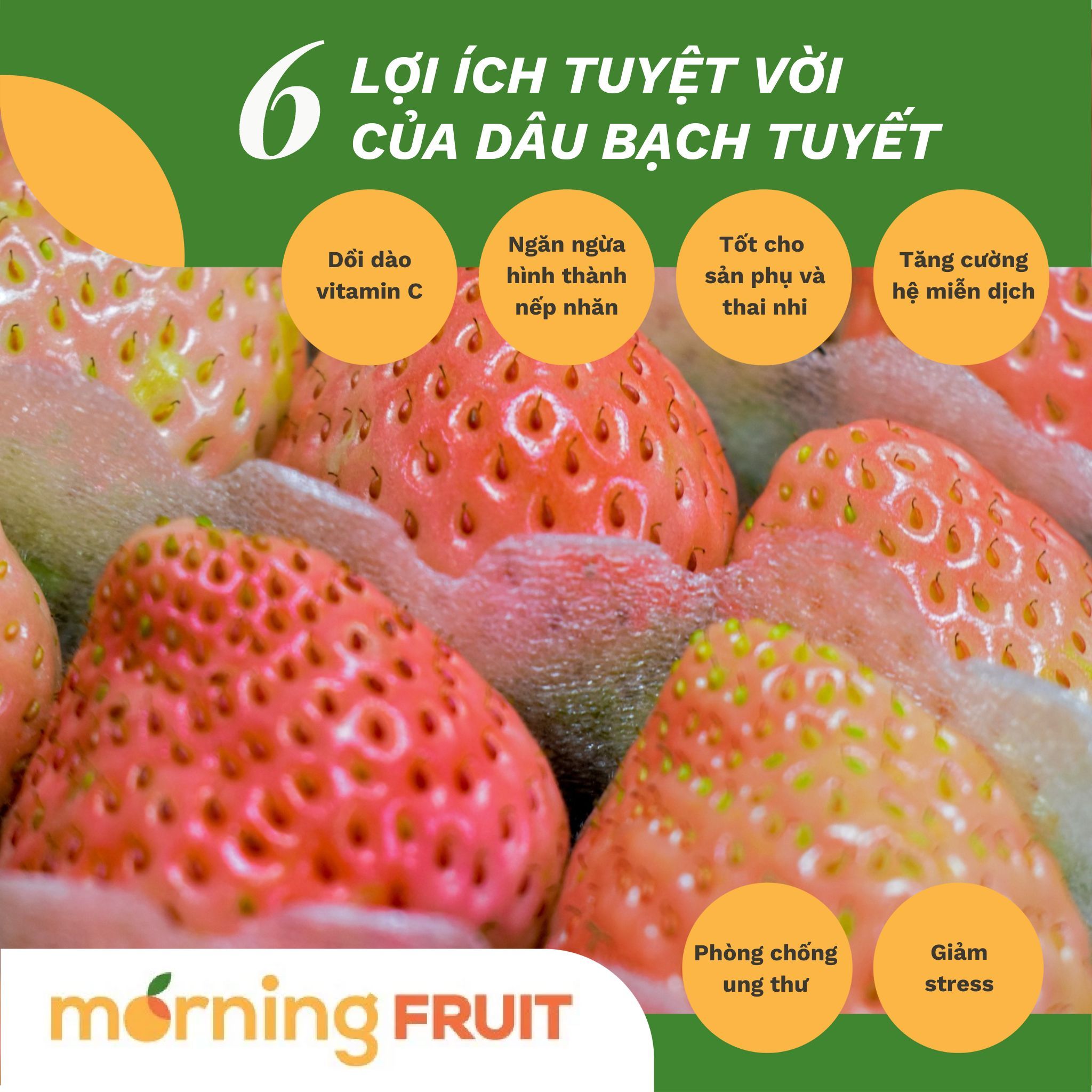 - Dâu Bạch Tuyết sau khi mua về, nên thưởng thức ngay hoặc bảo quản nguyên hộp trong ngăn mát tủ lạnh. Thời gian bảo quản kéo dài từ 1-3 ngày.