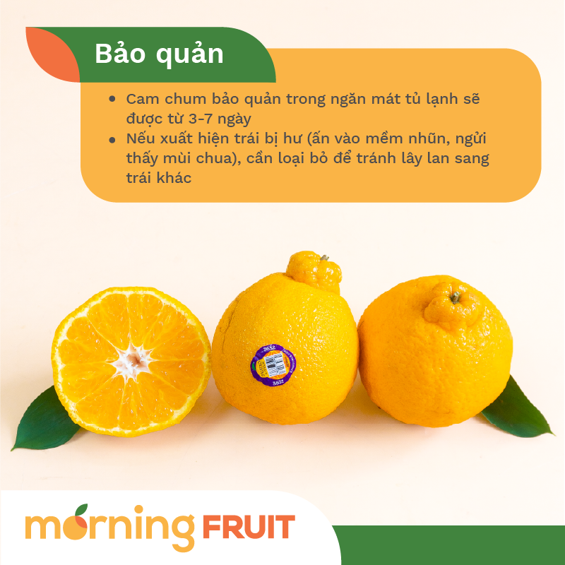 Bảo Quản Và Sử Dụng - Quýt Chum Sumo khi mua về nên ăn ngay hoặc bảo quản trong tủ mát từ 3-7 ngày. - Nếu xuất hiện trái hư (ấn vào mềm, ngửi thấy mùi chua) nên loại bỏ ngay để tránh lây lan sang trái khác.